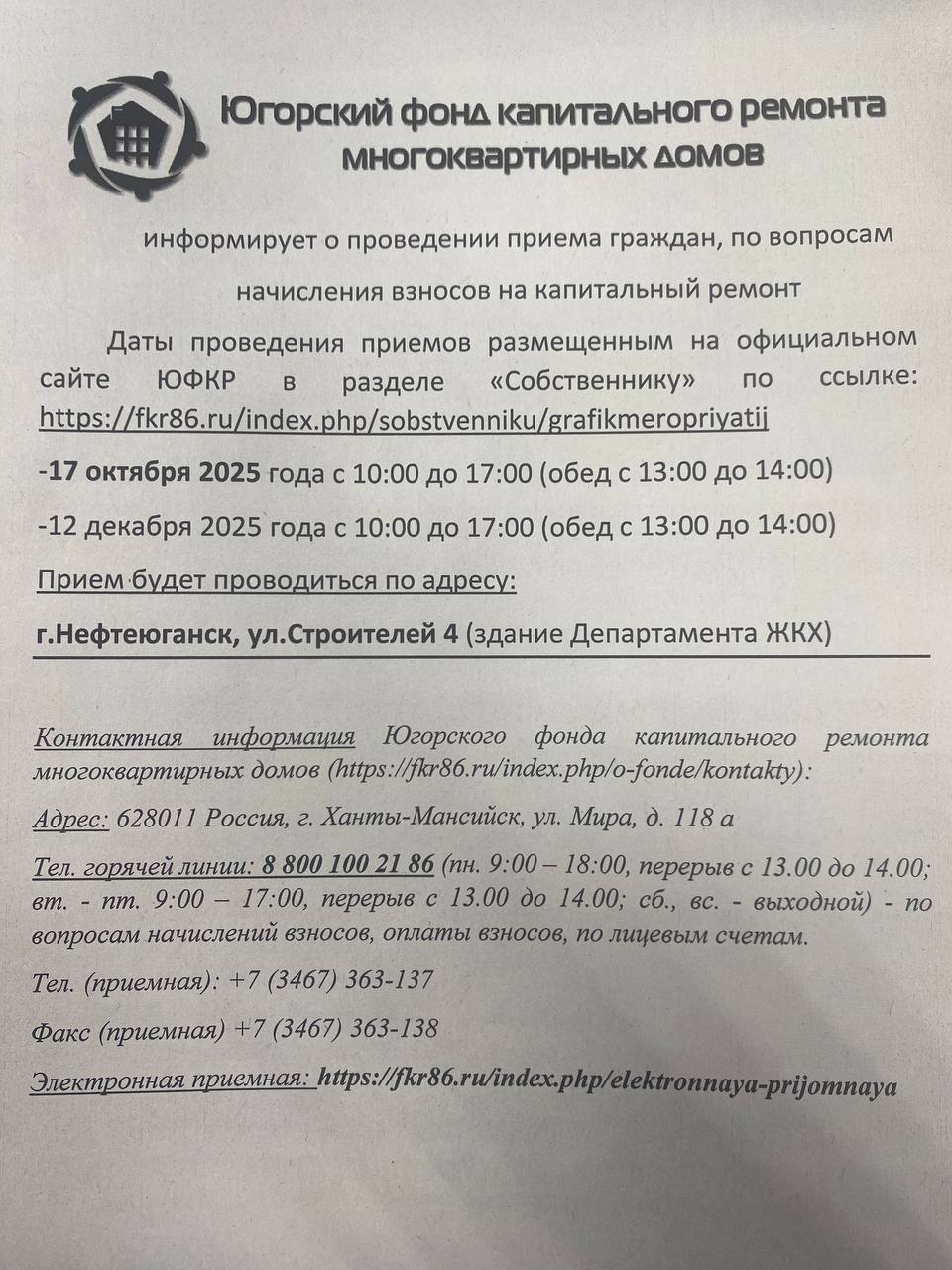АО «Юганскводоканал» сообщает , что в связи с капитальным ремонтом подрядной организации ООО «Бриг» 30.09.2025 с 9:00 до устранения будет отсутствовать ХВС.